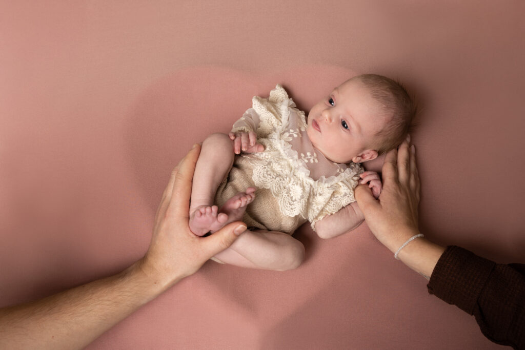 Bien sûr, dans un questionnaire de préparation envoyé avant la séance, je vous demande vos couleurs préférées. Pour les tissus d’emmaillotage, fonds couleurs et sols.